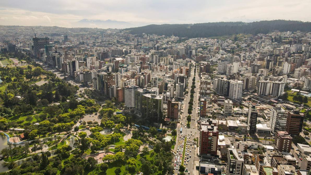 Fotografía del 16 de junio de 2021, tomada desde un dron, que muestra la zona norte de la ciudad de Quito (Ecuador).