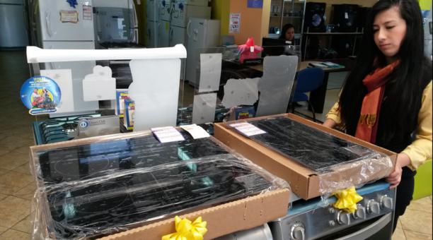 En el local de La Ganga, ubicado en el centro norte de Quito, se exhibe una cocina de inducción a un precio de USD 190 (incluido el IVA) y otro modelo de Indurama también a USD 401.