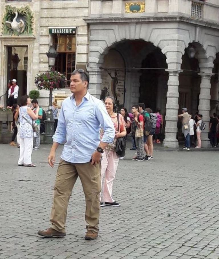 El exmandatario se encuentra en Bruselas, donde ha empezado a hacer turismo. Una fotografía suya, visitando la Gran Plaza, en el centro de la capital de Bélgica, ha sido difundida a través de Whatsapp.