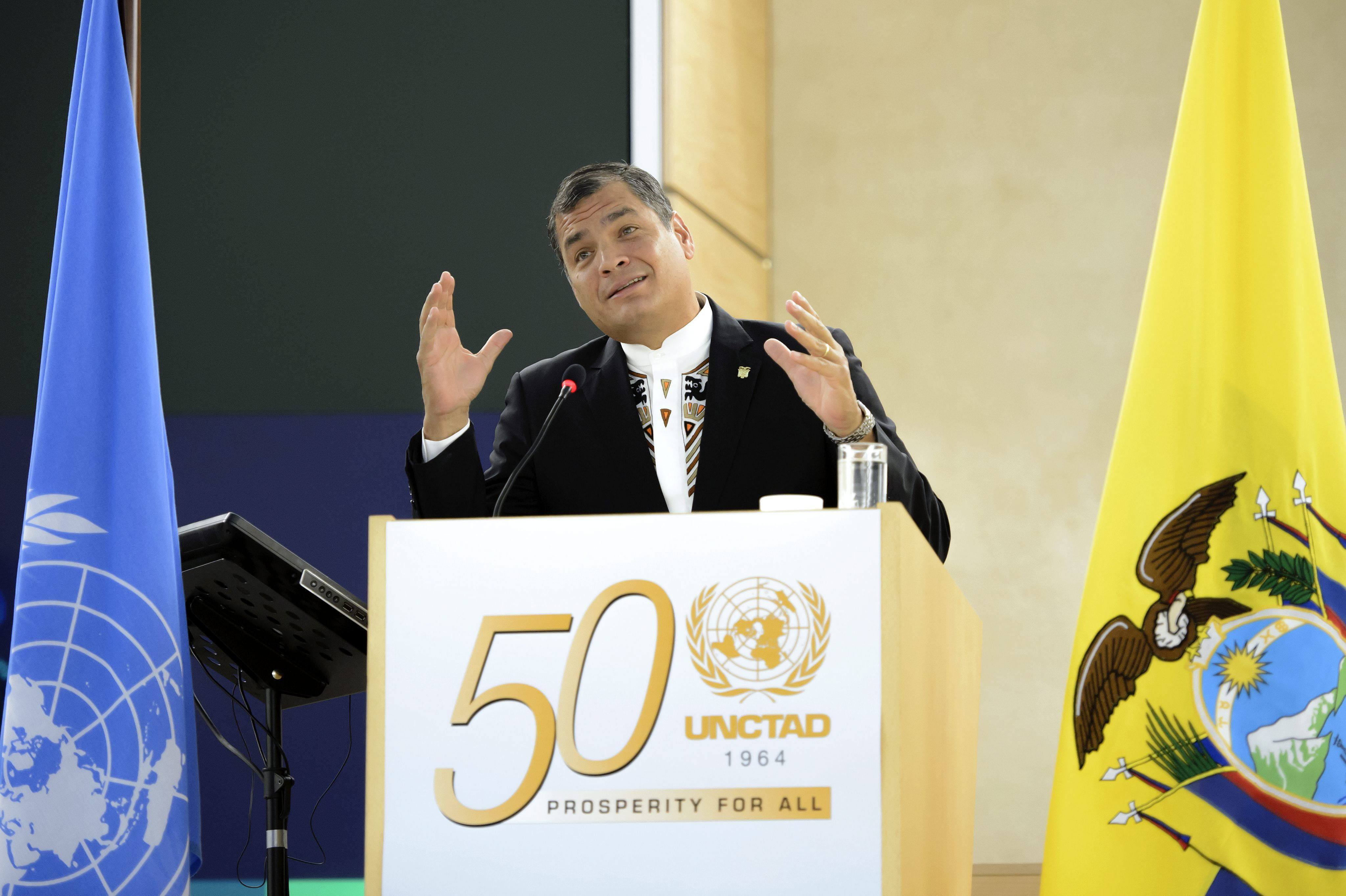 Correa plantea la opción de una moneda regional durante conferencia en Ginebra