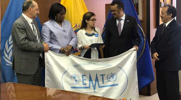 Un certificado que acredita la calificación de dos hospitales móviles y una unidad médica quirúrgica del país, como equipos médicos de emergencia nivel dos (EMT, por sus siglas en inglés). Eso recibió la ministra de Salud de Ecuador, Verónica Espinosa, en la 29 Conferencia Sanitaria Panamericana. Lo recibió de manos d el director general de la Organización Mundial de la Salud, Tedros Adhanom Ghebreyesus, este martes 26 de septiembre del 2017.