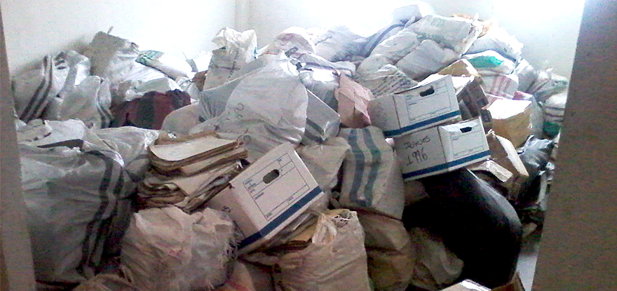En el piso, desordenados, en cartones y costales fueron encontrados los procesos en el archivo judicial de Esmeraldas.