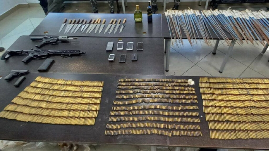 Evidencias de las armas y explosivos incautados en la Penitenciaría del Litoral, el 3 de septiembre de 2022.