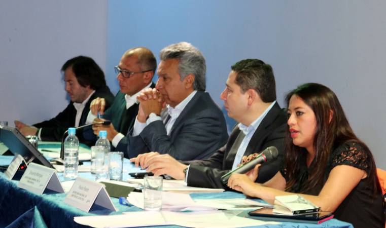 En la lista de ingreso a la cita constaban más nombres. Paola Pabón, quien sería ratificada en la Secretaría de la Política; Ãlex Mora, quien iría a la Secretaría de Comunicación; Eduardo Mangas, quien se sentó junto a Moreno y tenía el rótulo en la mesa como Secretario General de la Presidencia, y Johana Pesántez, quien iría a la Secretaría Jurídica de la Presidencia.
