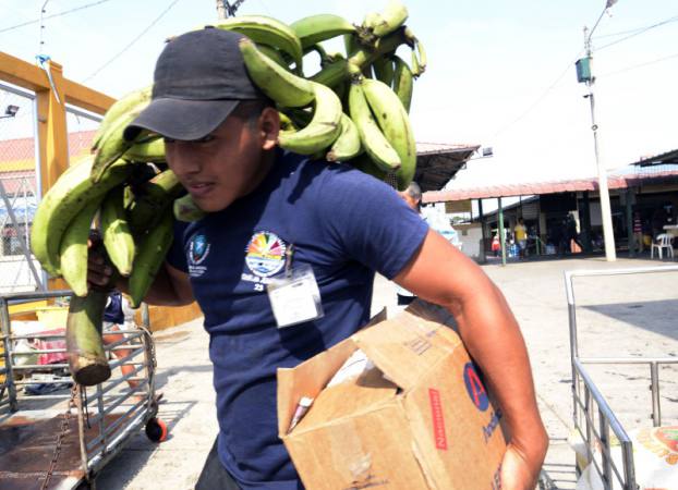 Seis fincas de la parroquia Roberto Astudillo, en Milagro, recorrió el comerciante Jefferson González para conseguir 100 racimas de plátano verde y abastecer el miércoles 13 al mercado de Sauces 9, en el norte de Guayaquil. Contó que ahí pudo despachar pedidos y venderle plátano a seis colegas.