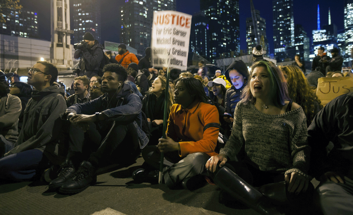 protestas-nyLuego de que el jurado decidiera no acusar al policía Daniel Pantaleo por causar la muerte por estrangulamiento de un hombre afroamericano desarmado, miles de manifestantes salieron a las calles de Nueva York ayer.