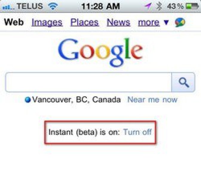 Si usted es usuario de cualquiera de estos dos dispositivos, podrá ver una opción On/Off al final de la pantalla para activar o desactivar el uso de Google Instant en su navegador web.