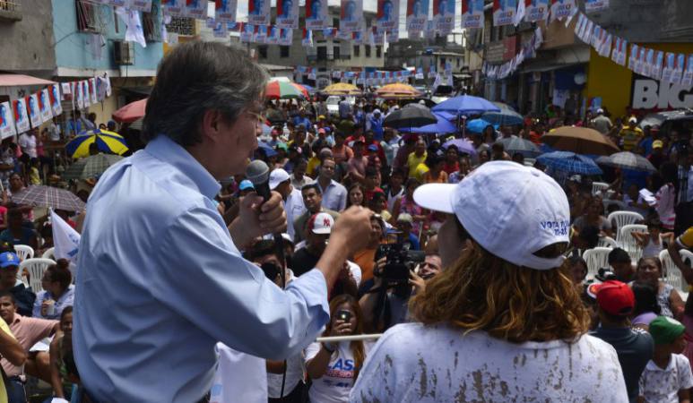 Antes de participar en un mitin en el sector de Las Malvinas, en el sur de la urbe, donde hubo presentación de artistas y concursos de bailes, el presidenciable del movimiento CREO se refirió al respaldo que Jimmy Jairala, el prefecto del Guayas y líder de Centro Democrático, anunció para el candidato del oficialismo, Lenín Moreno.