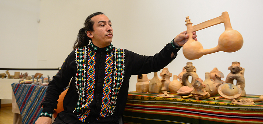 El mexicano Gregorio Cortés, originario de una comunidad alfarera del municipio de Texcoco y músico especializado en flautas mayas y aztecas, estuvo junto con Esteban Valdivia la anterior semana en la Casa del Alabado, donde participaron en los Encuentros sonoros precolombinos y en la presentación del libro Música y sonidos en el mundo andino, editado por Carlos Sánchez Huaringa (Perú), director del Centro Universitario de Folklore del Centro Cultural de la Universidad Nacional Mayor de San Marcos.