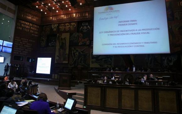 El presidente de la Comisión de Régimen Económico, Oswaldo Larriva, anunció que la presidenta de la Asamblea, Gabriela Rivadeneira, le informó que este lunes se debatiría en segundo y definitivo debate la Ley de Incentivos a la Producción y Prevención de la Evasión Fiscal.