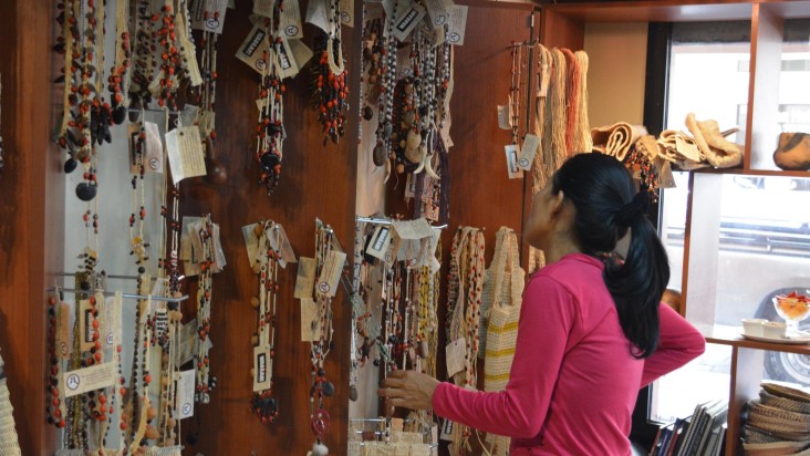 Sus manos se mueven con agilidad similar a la de las aves cuando mueven sus alas. Corta, cuece y selecciona las semillas que va a utilizar para las decenas de artesanías que elabora, luego parte a dejarlas en la tienda de la Asociación de Mujeres Waorani de la Amazonía Ecuatoriana.