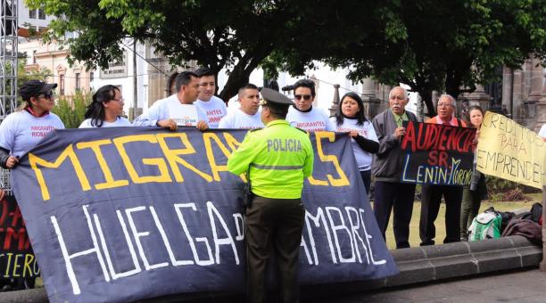 Mercedes Zaruma regresó al Ecuador hace tres años, luego de haber vivido 20 años en España y asegura que están atravesando una crítica situación. “El expresidente Rafael Correa nos pintó un país de colores y regresamos con la esperanza de trabajar pero no hay oportunidades”. Los manifestantes indicaron que se mantendrán en una huelga de hambre hasta conseguir que el Jefe de Estado los escuche. (I)