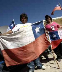 En la madrugada de hoy hubo niños izando banderas, mujeres y hombres con los ojos empañados y gestos de alegría, siguieron todos los detalles de las últimas operaciones de rescate en el centro de esta pequeña ciudad enclavada en pleno Desierto de Atacama.