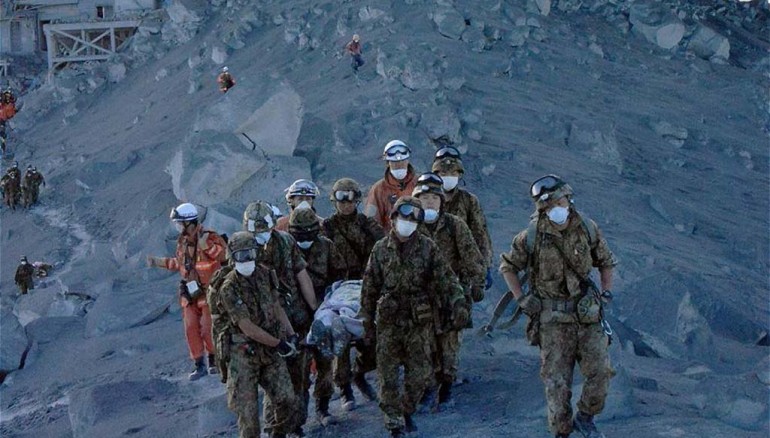 Hasta el momento, cientos de soldados, bomberos y policías enviados al lugar desde el sábado han descubierto 36 personas en estado de paro cardíaco tras la erupción de vapor, gas, cenizas y piedras que ocurrió de repente hace tres días y dejó atrapados a 300 excursionistas.