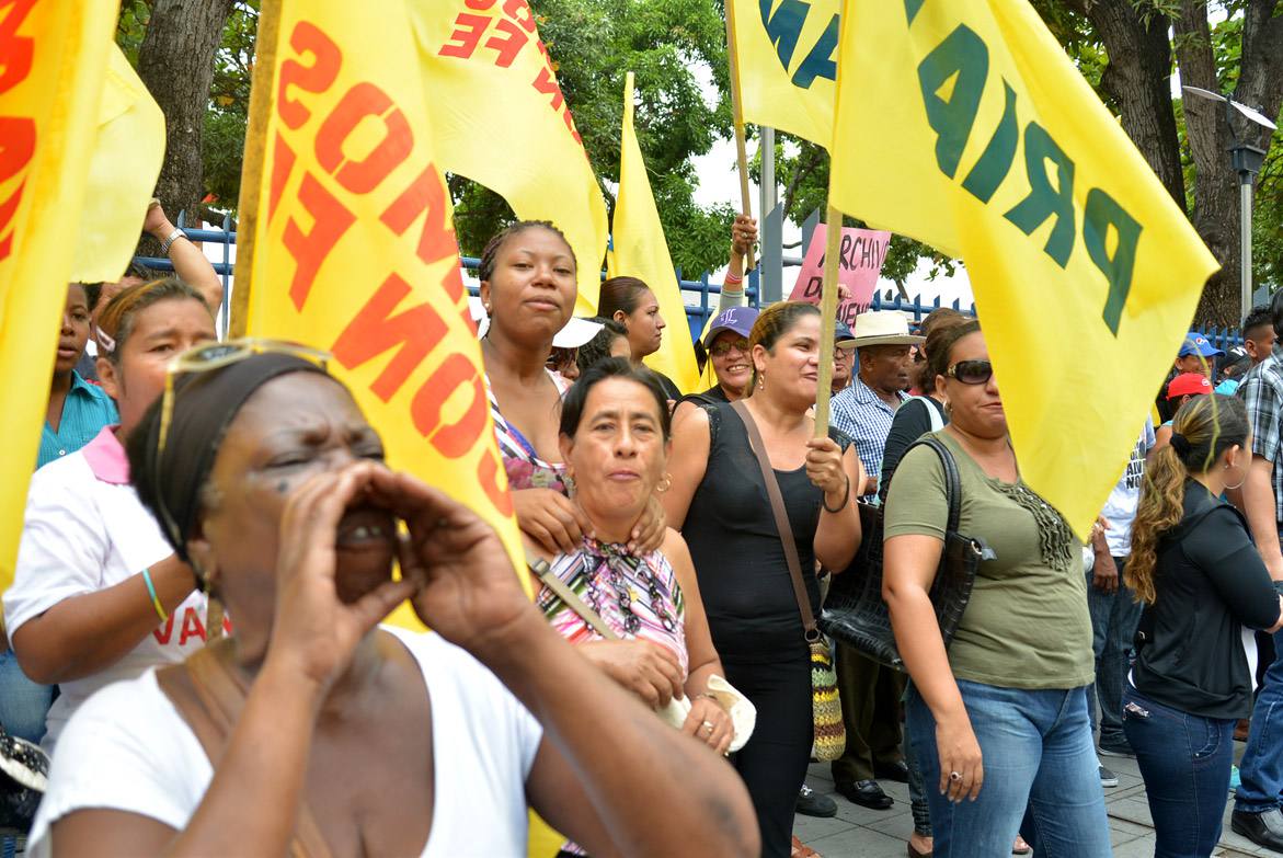 Ayer en los exteriores de la gobernación del Guayas, un grupo de manifestantes pedían la salida del presidente Rafael Correa, otros la legalización de sus terrenos y otros que por favor hagan silencio.