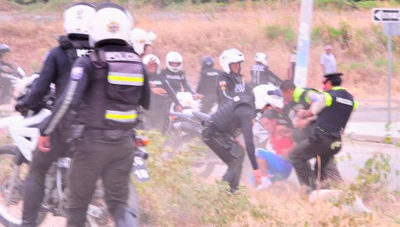 Forcejeo de la policía con moradores de la cooperativa Socio Vivienda 2 durante la operación antidrogas.