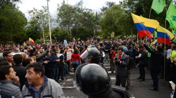 Pasadas las 18:00, el número de personas que gritaban en contra del Gobierno aumentó y del oficialismo disminuyó. El tráfico en la av. de Los Shyris fue desviado. Pasadas las 21:00 aún había personas que de lado y lado continuaban manifestándose.