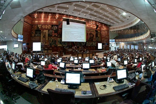 Durante el debate, Gabriela Rivadeneira, Presidenta de la Asamblea, pidió a las barras que gritaban a favor de la aprobación de la Ley de Aguas que guarden compostura y que la Escolta Legislativa intervenga.