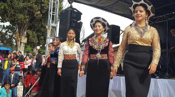 El complemento a la elegancia lo impusieron las fajas con bordados gruesos, bayetas (capas), anacos (faldas), tupos (prendedores) y zarcillos (aretes) de vistosos colores. Los atuendos fueron creaciones de artesanos y diseñadores expertos en ropa, joyas y bordados como Angelita Purudí, Rosa Lozano, Anita Guamán, Olga Chalán, Ana Cango, entre otras. También hubo la presentación de modelos mestizas y ropa actual. Con esta iniciativa, el Departamento de Interculturalidad busca fortalecer la riqueza cultural que hay detrás de las costumbres, tradiciones y trabajo de los artesanos. Son prendas ancestrales con ajustes modernos y accesorios que mantienen el estilo incaico de la identidad indígena, dijo Lozano. La diseñadora Ana Cango presentó las últimas tendencias en bordados con diseños de la chacana andina en el filo de la pollera, cuello de la blusa y en la faja. Esther Gualán, de Las Lagunas, fue quien vistió este llamativo traje. Gualán ha participado en varias pasarelas en Loja y Cuenca. Le agradó esta última porque reunió exclusivamente a los artesanos y diseñadores de su cantón. Acá los artesanos se esmeran por vestir con elegancia a la mujer, destacó (I).