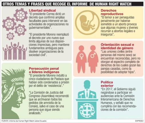 The shadow of former President Rafael Correa still smudges the Ecuadorian business card on human rights. The management of the now opposition to President Lenin Moreno, seven months after delivering the Presidency, full of negative adjectives the annual report of the organization Human Right Watch (Observatory of Human Rights) on Ecuador on issues such as freedom of expression, freedom of association, judicial independence, among others.