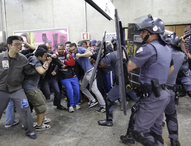 Despite these actions, the protesters regrouped, others joined, and about 300 marched to the secretariat Security of Sao Paulo chanting, “There will be no Cup will strike”.